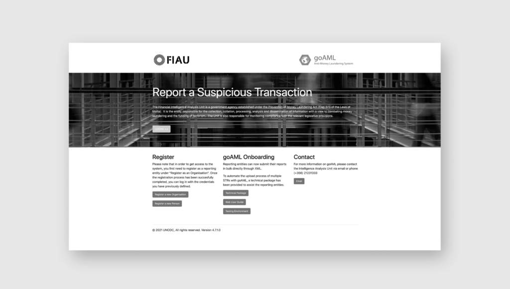 In June 2020, the Unit replaced the STR Submission System and internal database with goAML, a fully integrated software solution specifically developed for Financial Intelligence Units (FIUs) by the United Nations Office on Drugs and Crime (UNODC). With the introduction of goAML, the setting up of dedicated workflows for different tasks was necessary.