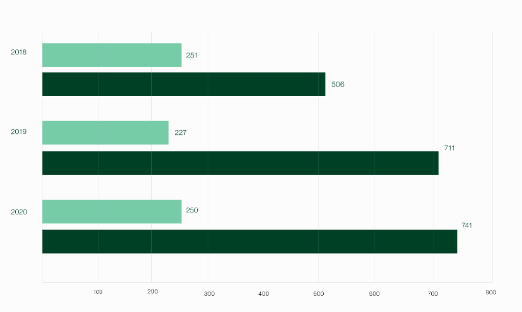 Earlier on in this report, in the Corporate and People Performance and Culture section, the need for an increased staff complement was highlighted. The decision to increase human resources was based on the recommendations made by the European Banking Authority, MONEYVAL, the International Monetary Fund and the Organisation for Economic Co-operation and Development. The FIAU has since been recruiting talented human resources through improved and updated recruitment practices and a rigorous selection process. The staff complement has risen from 43 in November 2018 to 98 in December 2020. The projections are that by the end of 2021 the FIAU will be home to 157 employees spread across all sections and roles within the Unit. This increase aims to ensure that the Unit has the necessary resources to effectively perform all the functions entrusted to it, as set out and overviewed in this annual report.