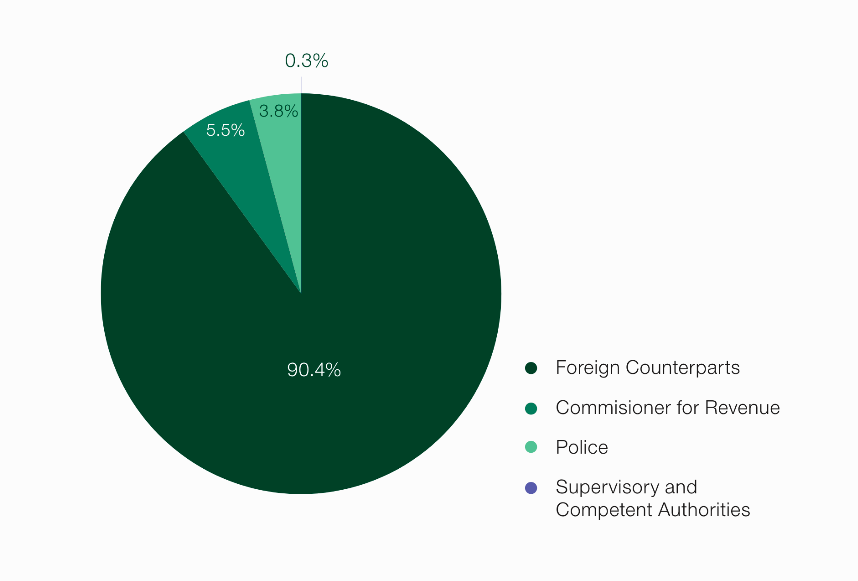 Enhanced cooperation with Commissioner for Revenue (CFR) on tax evasion cases - Over three years, over 580 reports on tax evasion suspicions were disseminated to the CFR. The assessment of some of these cases has so far led to the recovery of €8 million in evaded taxes, administrative fees and charges.