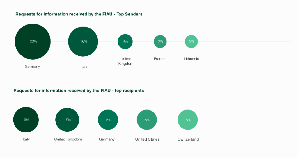 The FIAU’s Intelligence Analysis Section shares intelligence on a regular basis with the MPF as well as with domestic supervisory and competent authorities, a process which has been facilitated further through the implementation of goAML. Since the implementation of goAML in June 2020, the FIAU has assisted in over 2,100 requests for assistance submitted by national supervisory entities and other competent authorities.