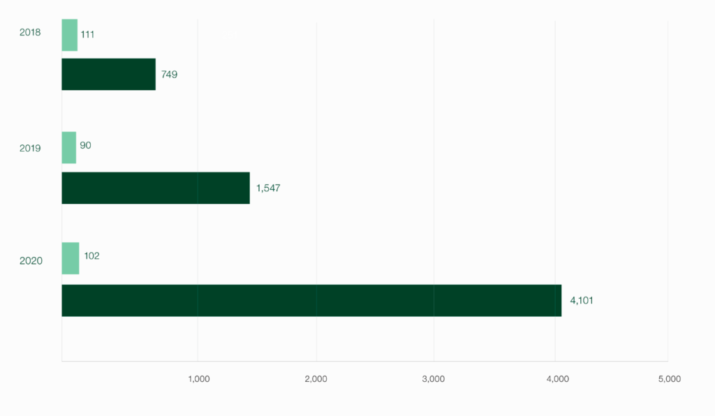 Increases in STR reporting and quality – STRs received increased from 1,679 in 2018 to 5,090 in 2020.
